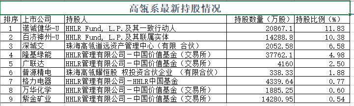 高領(lǐng)系其余持股公司深城交(301091.SZ)、廣聯(lián)達(dá)(002410.SZ)、格力電器(000651.SZ)、萬華化學(xué)(600309.SH)、紫金礦業(yè)(601899.SH)等公司則并未公告高瓴參與了轉(zhuǎn)融通業(yè)務(wù)。但值得注意的是,這些公司中,除深城交持股比例超過5%的股權(quán)變動(dòng)信息披露紅線,其他高瓴系公司在上市公司中的持股都低于5%。今年三季報(bào)中,上述股權(quán)除隆基綠能被減持外,其他都沒有減持跡象。