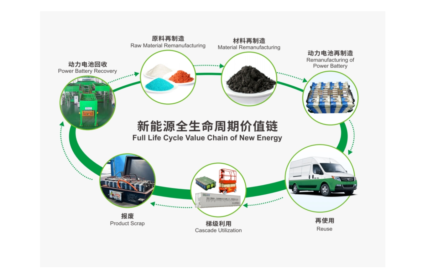 不僅僅是鈷這一種金屬材料在格林美實(shí)現(xiàn)了循環(huán)利用,目前,格林美集團(tuán)下屬子公司武漢動(dòng)力電池再生技術(shù)有限公司(以下簡稱“動(dòng)力再生”)已打造出“電池回收-原料再造-材料再造-電池包再造-再使用-梯級利用”全生命周期價(jià)值鏈體系,實(shí)現(xiàn)廢舊電池變廢為寶、循環(huán)利用。
