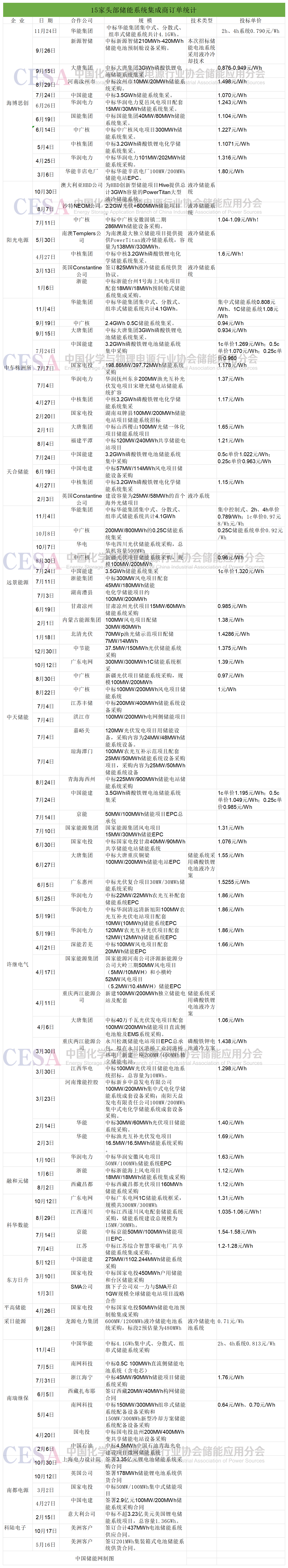 中國(guó)儲(chǔ)能網(wǎng)統(tǒng)計(jì)了海博思創(chuàng)、陽光電源、中車株洲所、遠(yuǎn)景能源、許繼電氣等15家主要儲(chǔ)能系統(tǒng)集成商今年1-11月的訂單情況。15家企業(yè)拿下的訂單規(guī)模超35GWh,其中包括參與央國(guó)企儲(chǔ)能系統(tǒng)集采,還有斬獲的海外訂單。