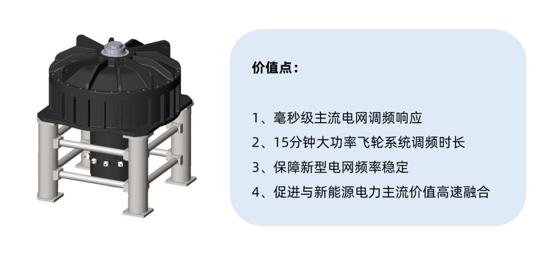該項(xiàng)目主要針對(duì)新能源發(fā)電在大規(guī)模并網(wǎng)后引起的電力系統(tǒng)不穩(wěn)定性問(wèn)題,解決了其間歇性和波動(dòng)性帶來(lái)的挑戰(zhàn)。作為一項(xiàng)平臺(tái)技術(shù),長(zhǎng)時(shí)、大容量飛輪儲(chǔ)能系統(tǒng)可以應(yīng)用于新型電力系統(tǒng)的調(diào)頻儲(chǔ)能場(chǎng)景,通過(guò)高頻次、快速充放電來(lái)穩(wěn)定并網(wǎng),提高新能源的消納能力。
