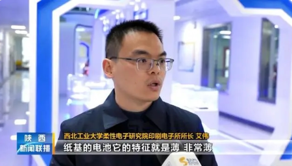 西北工業(yè)大學柔性電子研究院印刷電子所所長艾偉:“紙基的電池特征就是薄、非常薄,如果和我們現有的柔性的屏結合到一起,整個器件都可以輕薄的特征就凸顯出來了,首先是實現了它的電極的制備,實現快速批量的制備,就可以實現它像造紙一樣連續(xù)的生產?!?