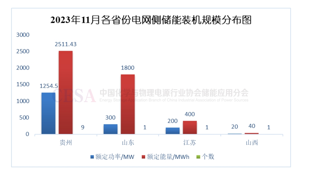 11月新增電網(wǎng)側(cè)項目較多,主要集中在貴州省。