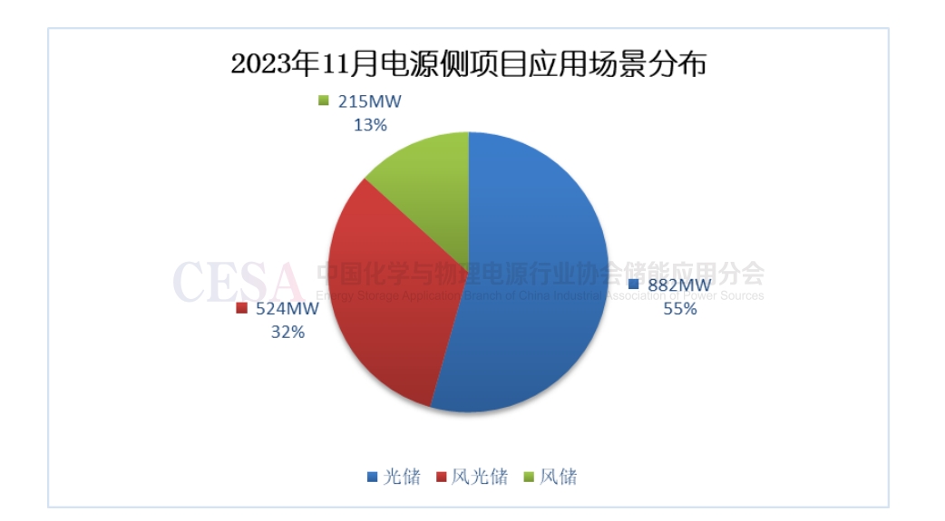 11月電源側(cè)新能源配儲項目為主,光伏配儲占比超過一半。
