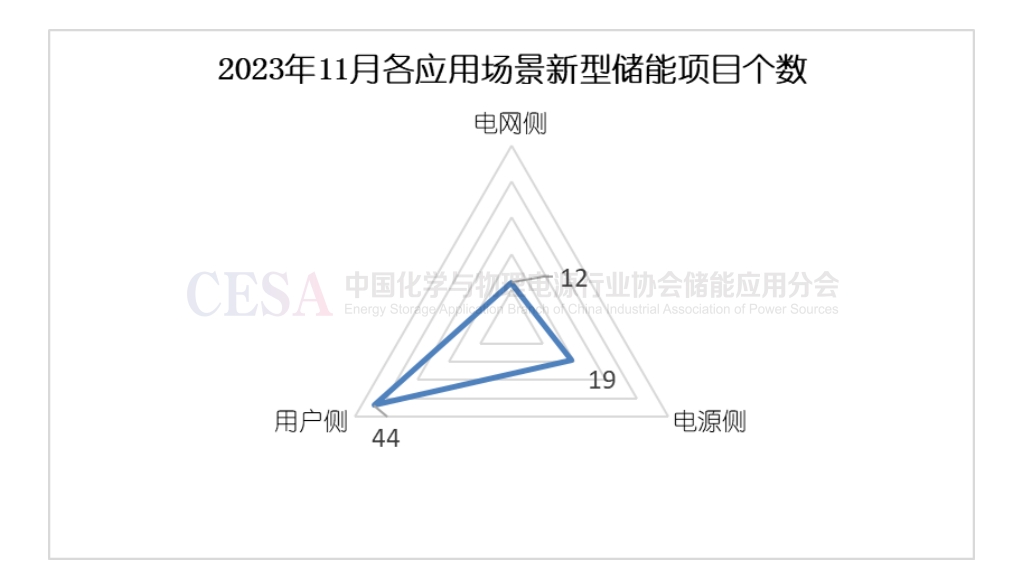 圖2-2 2023年11月各應(yīng)用場景新型儲能項目個數(shù)分布圖