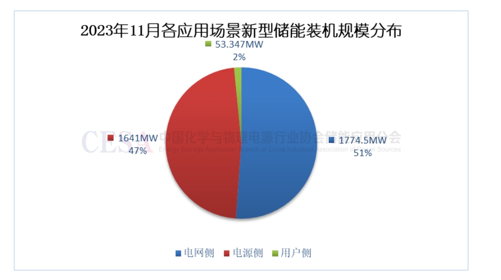 圖2-1 2023年11月各應(yīng)用場景新型儲能裝機(jī)規(guī)模分布圖