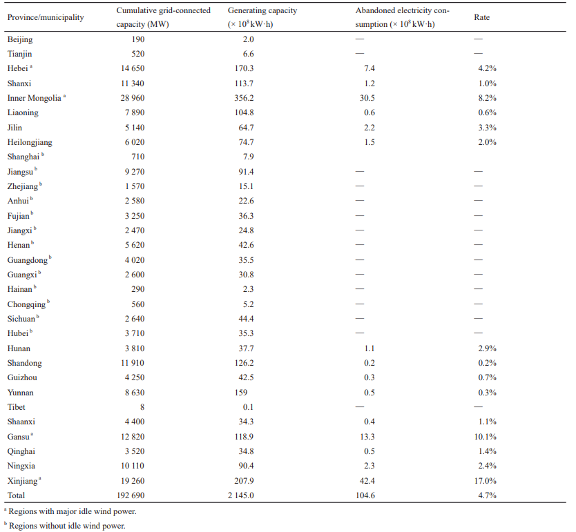 與此同時,中國中東部和南部地區(qū)的電力消費能力高于三北地區(qū)。因此,應加強風力發(fā)電在消費能力較強地區(qū)或負荷中心的開發(fā),特別是海上風力發(fā)電的開發(fā)利用,以提高附近區(qū)域風力發(fā)電的消費能力。