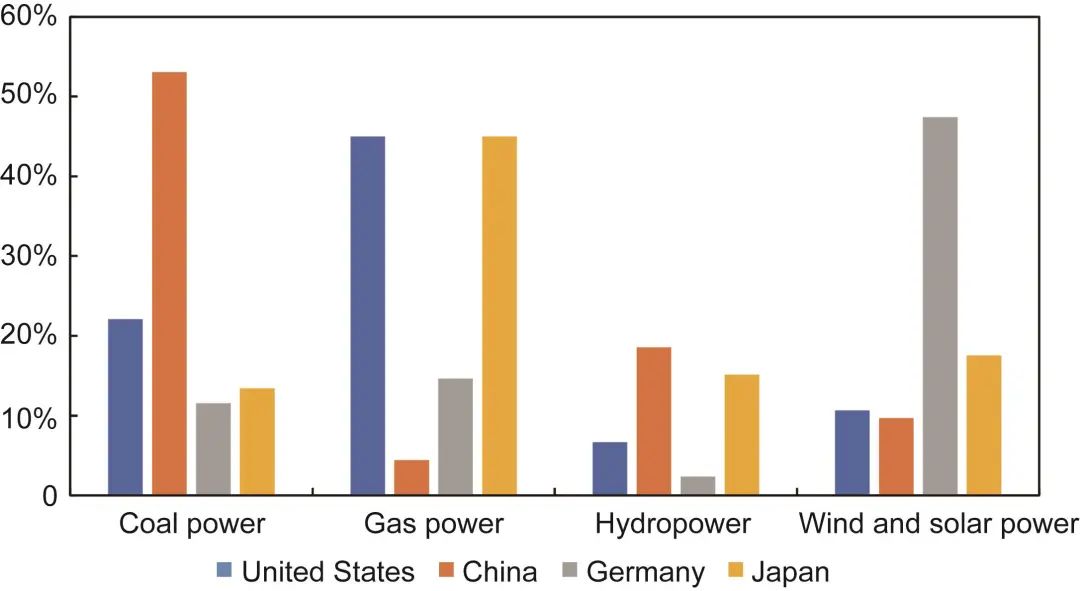 圖6 不同國家供電結構的比較