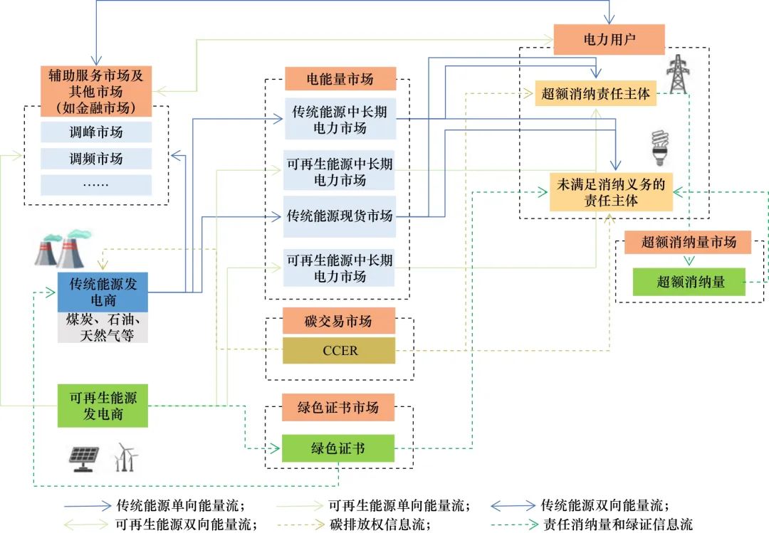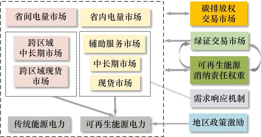(一)促進(jìn)RE消納的電力市場(chǎng)與碳市場(chǎng)、綠證市場(chǎng)的耦合機(jī)制研究