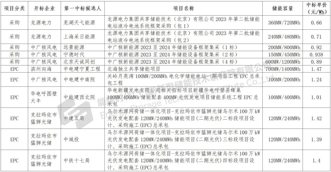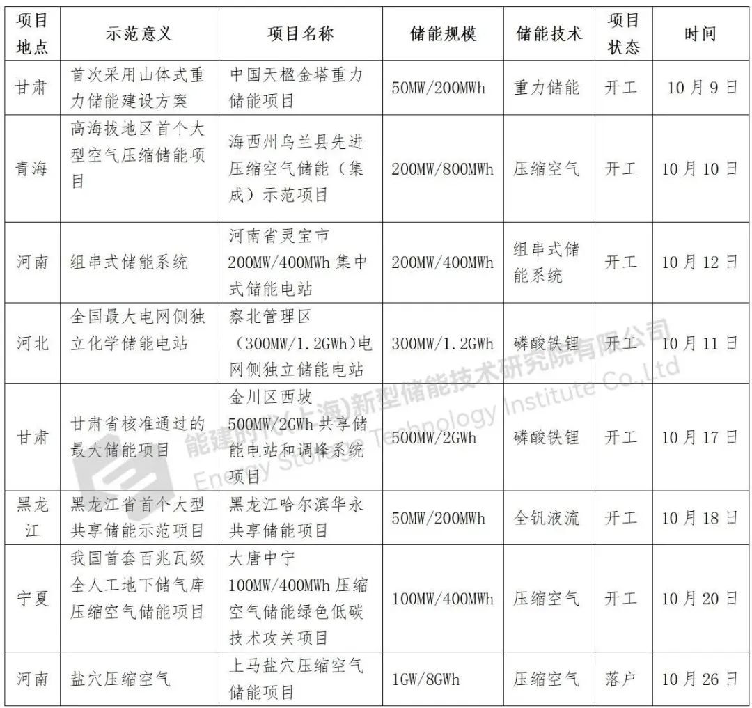 10月儲(chǔ)能項(xiàng)目?jī)r(jià)格