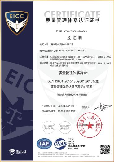 中國儲能網(wǎng)訊:近日,浙江綠儲科技有限公司(以下簡稱綠儲科技)經(jīng)過專業(yè)認(rèn)證機構(gòu)嚴(yán)格審核,順利取得質(zhì)量管理體系(QMS)、環(huán)境管理體系(EMS)和職業(yè)健康安全管理體系(OHSMS)證書即ISO三體系”認(rèn)證證書,這標(biāo)志著綠儲科技管理體系、管理能力和一體化服務(wù)水平日臻完善,在“標(biāo)準(zhǔn)化、規(guī)范化、精細(xì)化”管理方面邁上了新臺階。 認(rèn)證期間,專家審核組根據(jù)相關(guān)標(biāo)準(zhǔn)規(guī)定,通過面談交流、資料查閱、項目現(xiàn)場查看等形式,對公司質(zhì)量管理體系(QMS)、環(huán)境管理體系(EMS)、職業(yè)健康安全管理體系(OHSMS)運行情況進行“全面體檢”和“專家會診”,并提出指導(dǎo)性意見,經(jīng)過評審,專家組一致認(rèn)為綠儲科技管理體系有效運行,符合體系標(biāo)準(zhǔn)要求,綠儲科技“ISO三體系”順利通過認(rèn)證審核。 本次通過的“ISO三體系”認(rèn)證是對綠儲科技管理體系運行情況的綜合評價,是企業(yè)實現(xiàn)各項體系管理、各環(huán)節(jié)運轉(zhuǎn)的“定海神針”,對提升市場競爭力和企業(yè)管理水平具有重要意義,也為公司高質(zhì)量發(fā)展打牢堅實基礎(chǔ)。 綠儲科技將以本次認(rèn)證為契機堅持高標(biāo)準(zhǔn)嚴(yán)要求不斷優(yōu)化管理體系,提升合規(guī)管理水平,為打造成具有競爭力和影響力的綠色低碳企業(yè)而不懈努力。