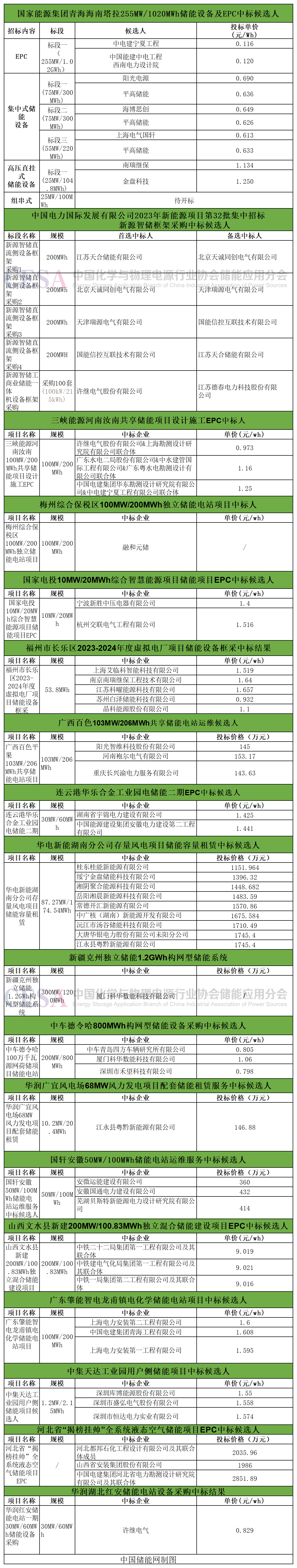 12月20日,中國華能集團(tuán)有限公司2023-2024年4.1GWh儲(chǔ)能系統(tǒng)框架協(xié)議采購招標(biāo)中標(biāo)結(jié)果公示,最終六家企業(yè)中標(biāo)。