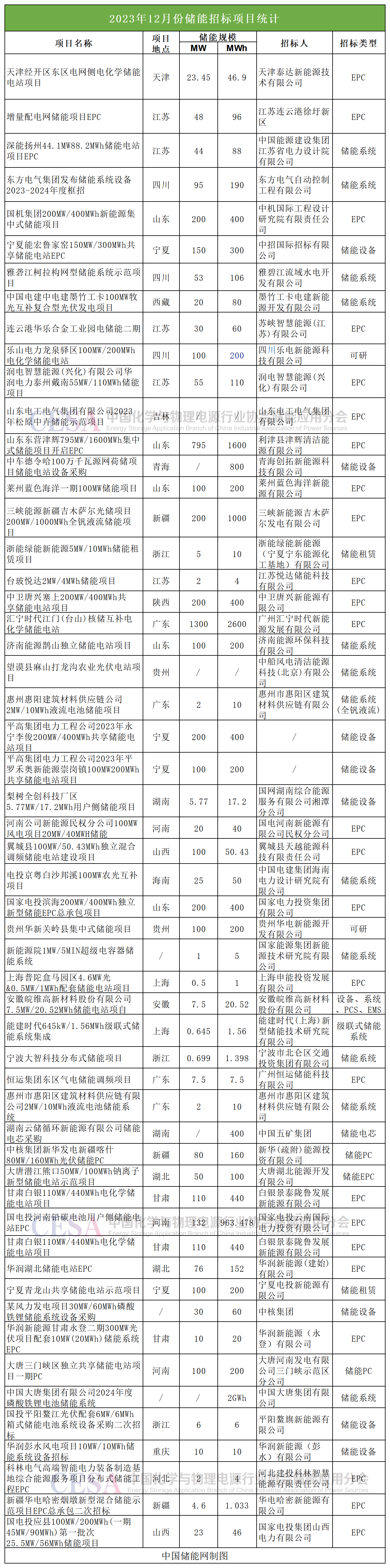 中國儲(chǔ)能網(wǎng)訊:2023年最后一個(gè)月,儲(chǔ)能采招市場持續(xù)火爆。據(jù)中國儲(chǔ)能網(wǎng)不完全統(tǒng)計(jì),共有55個(gè),規(guī)模達(dá)5.19GW/15.12GWh儲(chǔ)能項(xiàng)目招標(biāo),44個(gè)規(guī)模達(dá)4.40GW/27.65GWh儲(chǔ)能項(xiàng)目開標(biāo),招采需求包括電池系統(tǒng)、儲(chǔ)能系統(tǒng)、EPC、儲(chǔ)能變流器、容量租賃、儲(chǔ)能設(shè)備等。