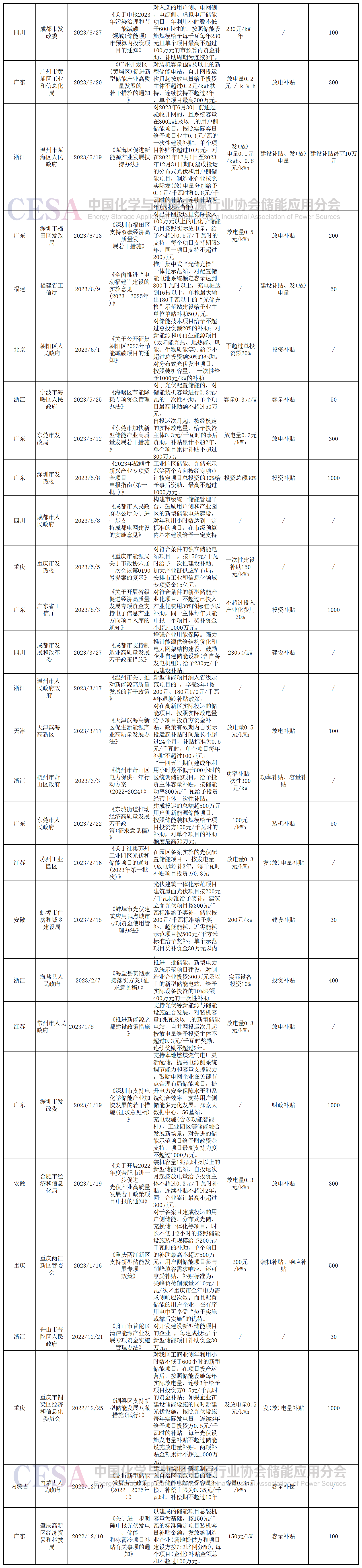1月5日,成都經(jīng)濟和信息化局印發(fā)的《成都市優(yōu)化能源結(jié)構(gòu)促進城市綠色低碳發(fā)展政策措施實施細則(試行)》針對儲能項目運營補貼給予了較大力度的政策支持。