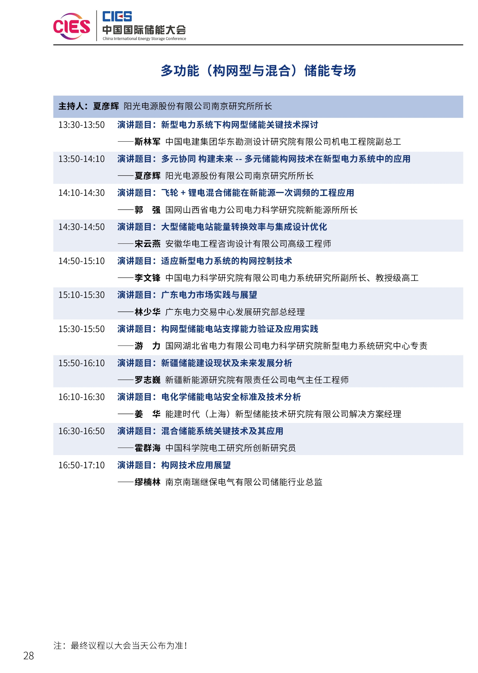 第十四屆中國(guó)國(guó)際儲(chǔ)能大會(huì)——多功能 (構(gòu)網(wǎng)型與混合) 儲(chǔ)能專場(chǎng)議程發(fā)布