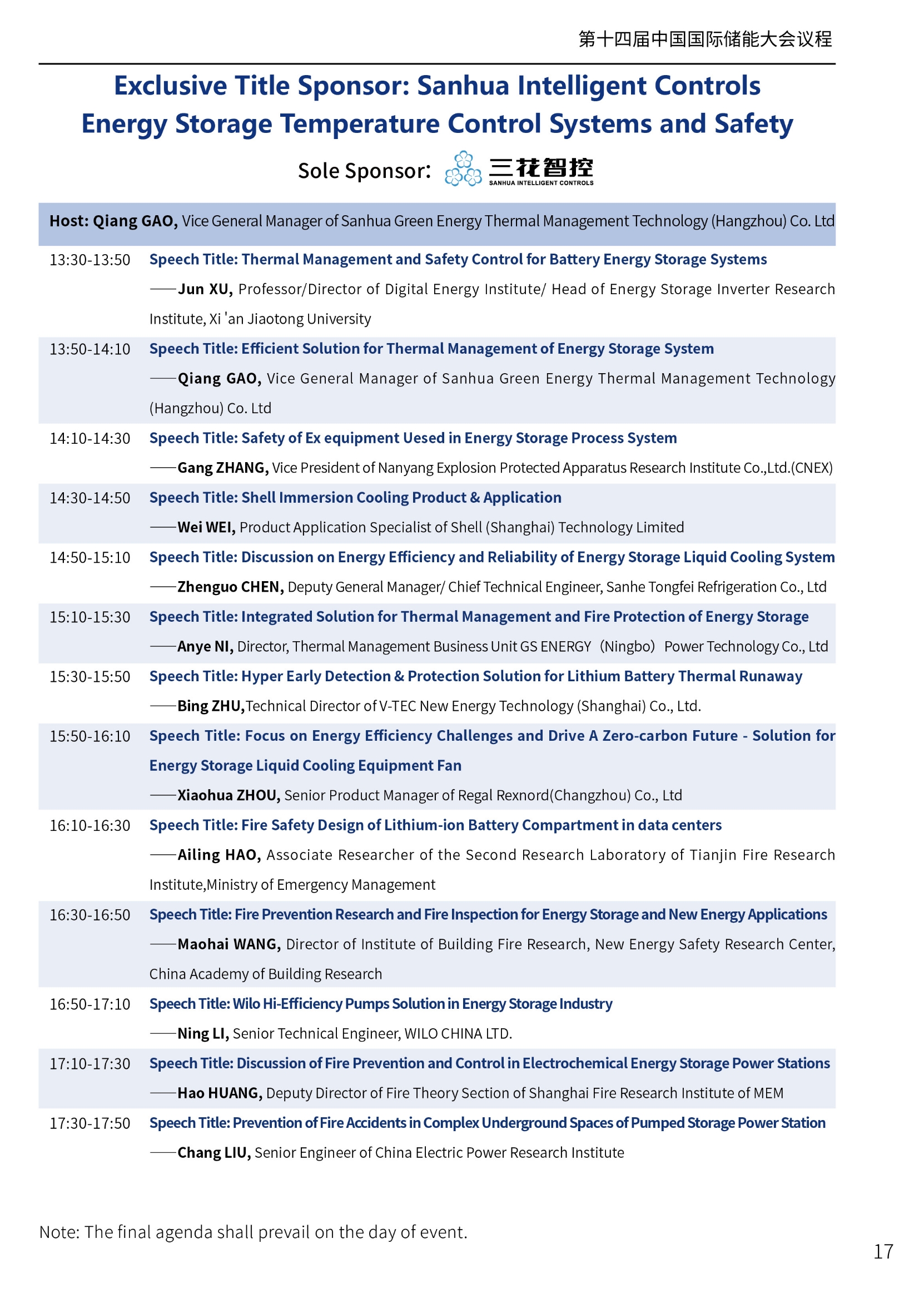 第十四屆中國國際儲能大會——儲能溫控系統(tǒng)與安全專場議程發(fā)布