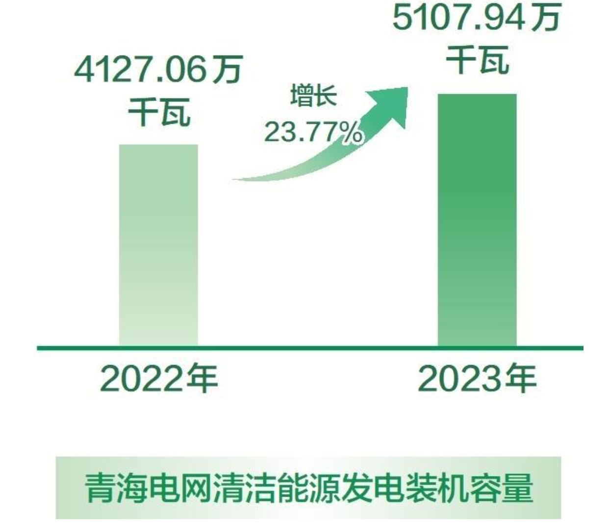 中國儲能網(wǎng)訊:1月12日從國網(wǎng)青海省電力公司獲悉,截至2023年年底,青海電網(wǎng)電源總裝機容量和清潔能源發(fā)電裝機容量分別達到5497.08萬千瓦、5107.94萬千瓦,其中清潔能源發(fā)電裝機容量同比增加980.88萬千瓦,同比增長23.77%。