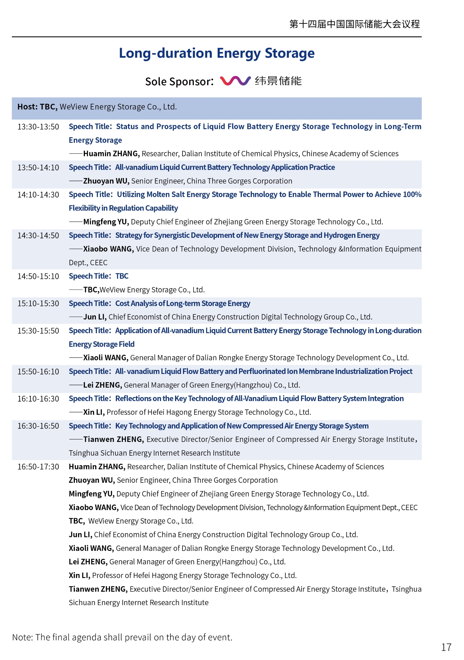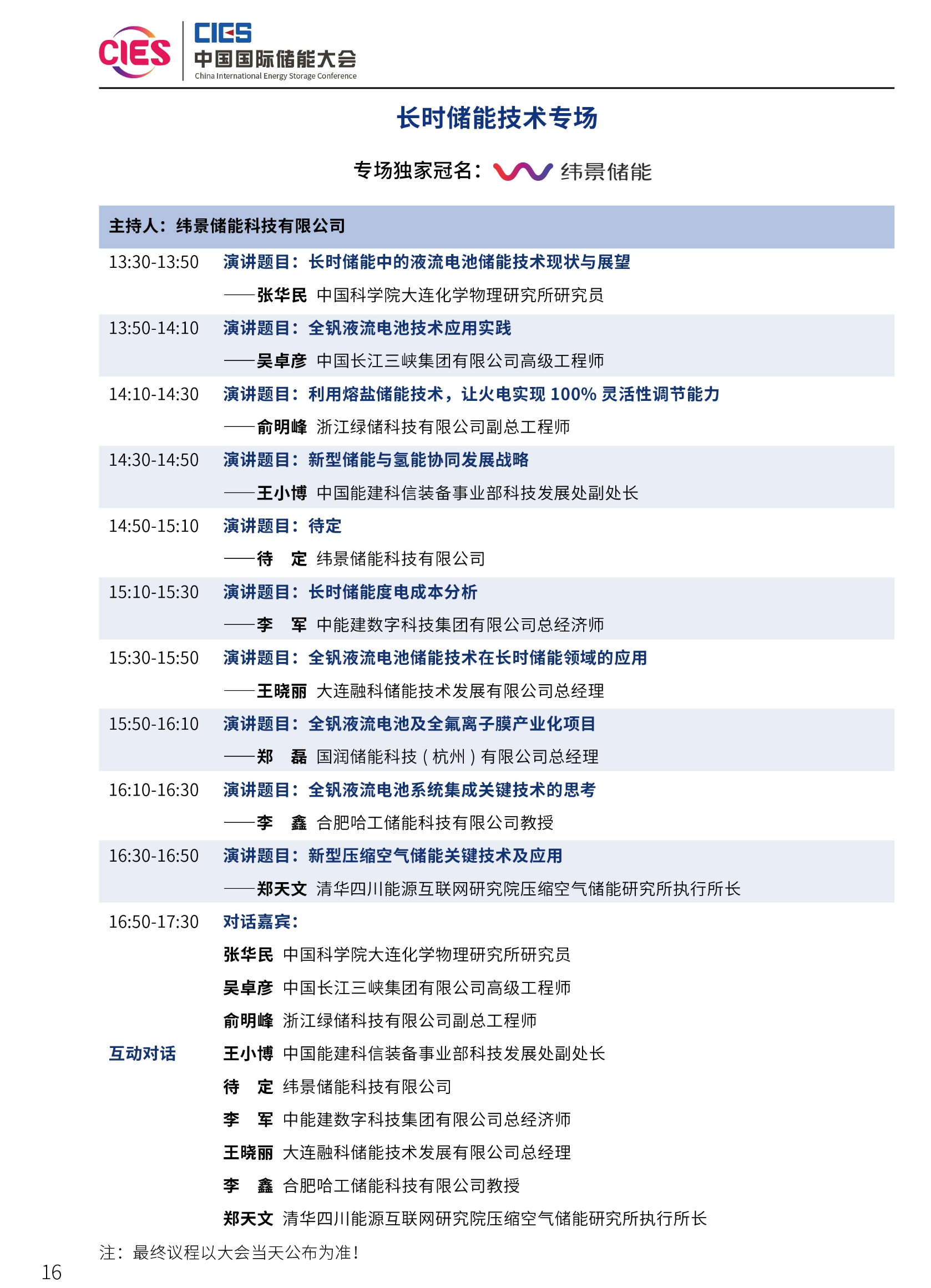 第十四屆中國國際儲能大會——長時儲能技術專場議程發(fā)布