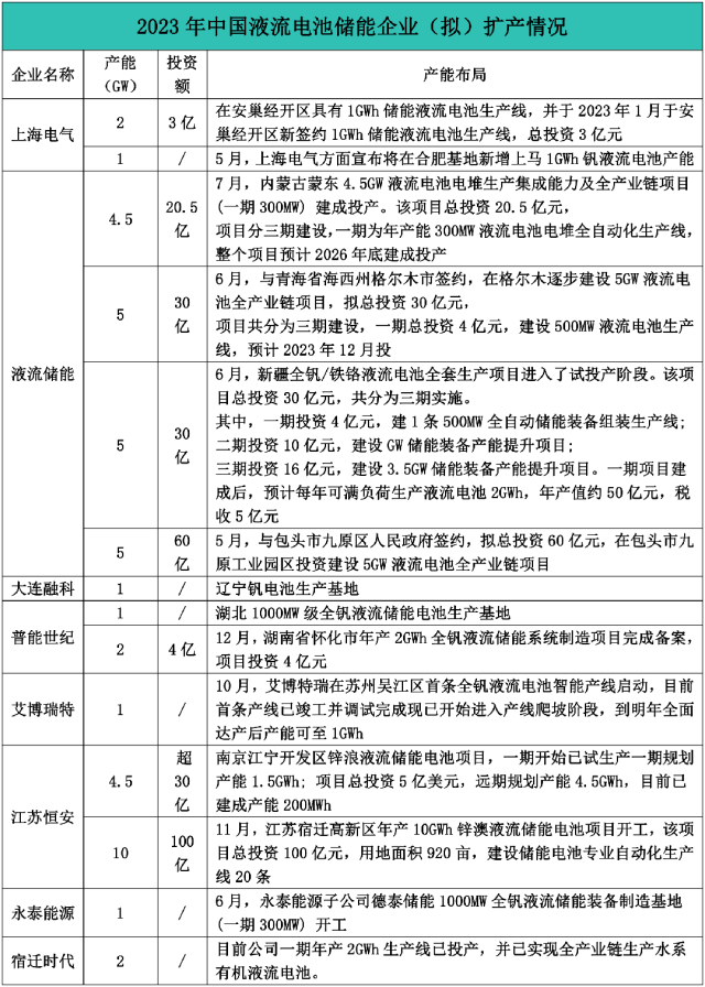 中國儲能網(wǎng)訊:2023年中國液流電池儲能企業(yè)(擬)擴(kuò)產(chǎn)情況