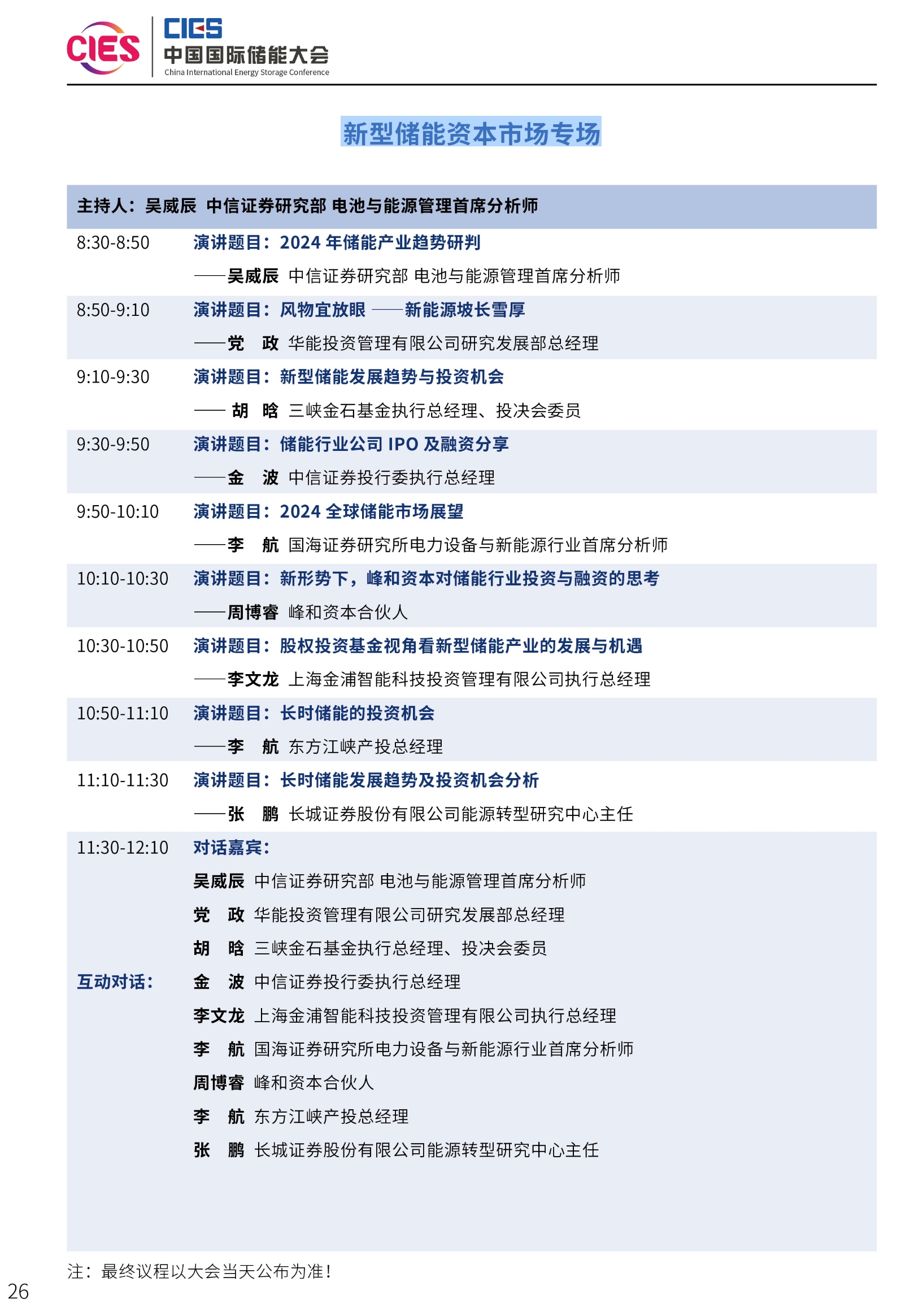 第十四屆中國國際儲能大會——新型儲能資本市場專場議程發(fā)布