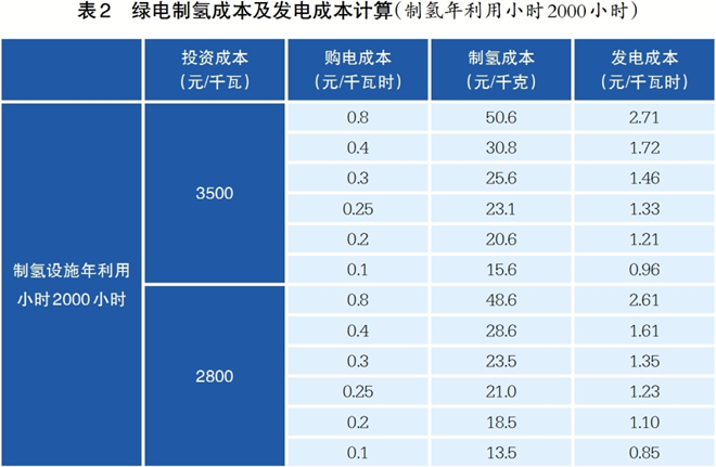 當(dāng)制氫設(shè)施年利用小時(shí)為2000小時(shí),假定氫能存儲(chǔ)成本為2元/千克,相關(guān)參數(shù)及計(jì)算見(jiàn)表2。