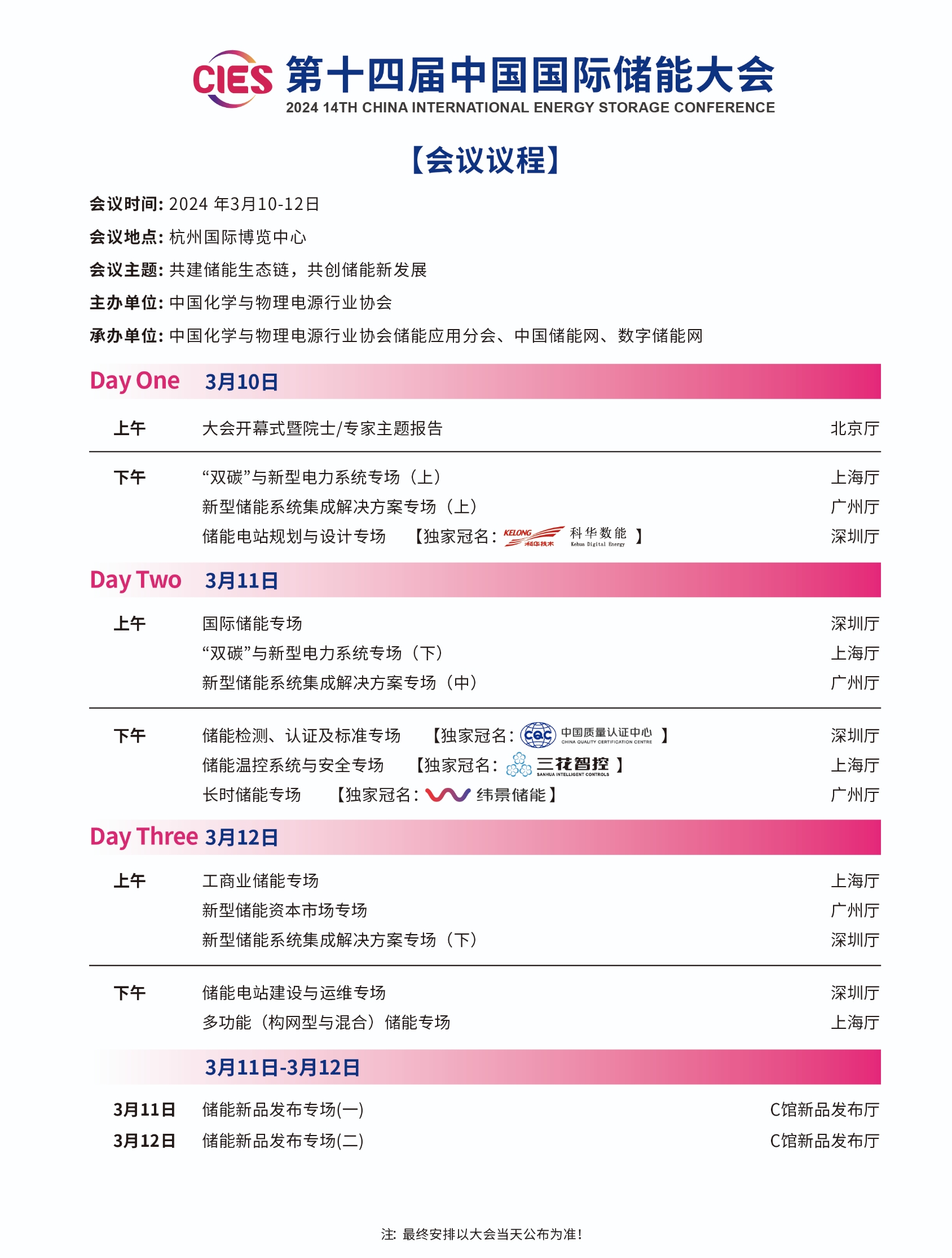 第十四屆中國(guó)國(guó)際儲(chǔ)能大會(huì)——新品發(fā)布專場(chǎng)議程