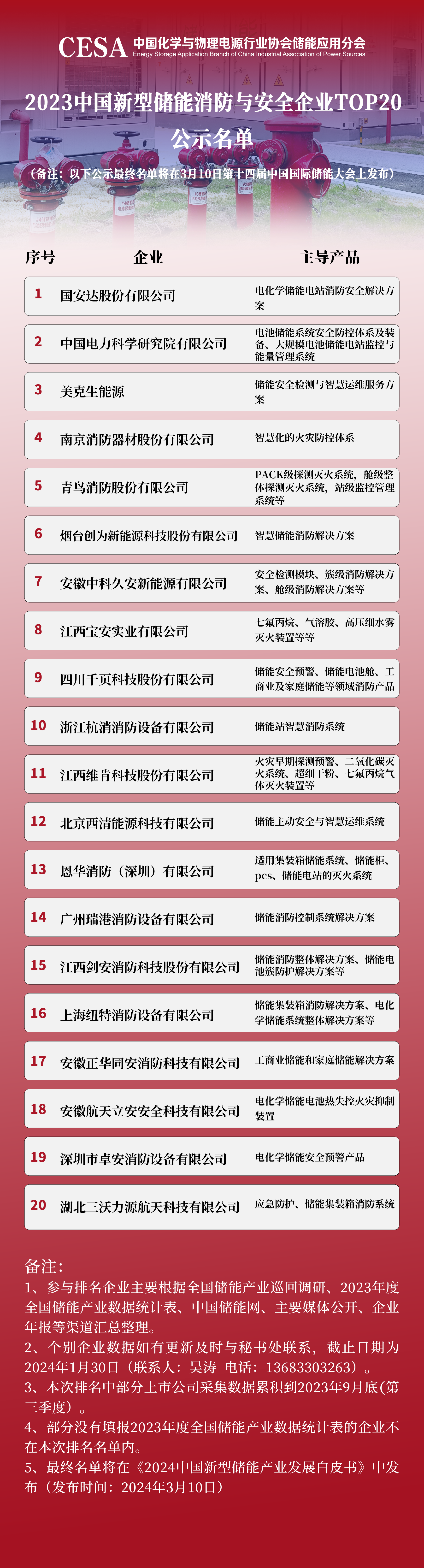 本次儲能產(chǎn)業(yè)鏈百強(qiáng)企業(yè)評選活動針對的對象主要是 CESA 儲能應(yīng)用分會廣大會員企業(yè)和與儲能業(yè)務(wù)緊密相關(guān)的上市公司,評價數(shù)據(jù)以2023年為準(zhǔn),主要通過協(xié)會實地走訪調(diào)研、會員企業(yè)年度數(shù)據(jù)申報、媒體披露和上市公司年報等多個渠道,最終形成2023中國新型儲能鋰離子電池企業(yè)TOP20、2023中國新型儲能系統(tǒng)集成企業(yè)TOP30、2023中國新型儲能PCS企業(yè)TOP30、2023中國新型儲能液流電池企業(yè)TOP30、2023中國工商業(yè)儲能企業(yè)TOP60、2023中國新型儲能BMS企業(yè)TOP10、2023中國新型儲能飛輪儲能企業(yè)TOP10、2023中國新型儲能溫控系統(tǒng)企業(yè)TOP20、2023中國新型儲能消防與安全企業(yè)TOP 20、2023中國新型儲能壓縮空氣儲能企業(yè)TOP10及2023中國新型儲能產(chǎn)業(yè)企業(yè)TOP100名單。