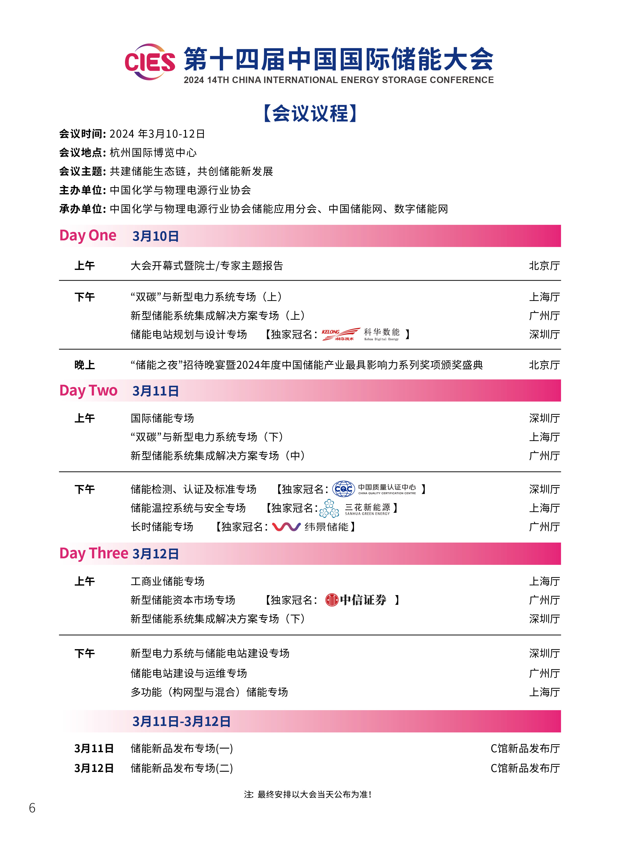 第十四屆中國國際儲能大會將于 2024年3月10-13日在杭州國際博覽中心如期舉行,非常感謝您百忙之中出席本次大會?,F(xiàn)將2024 CIES會前相關(guān)事項作簡要說明,請大家參照。