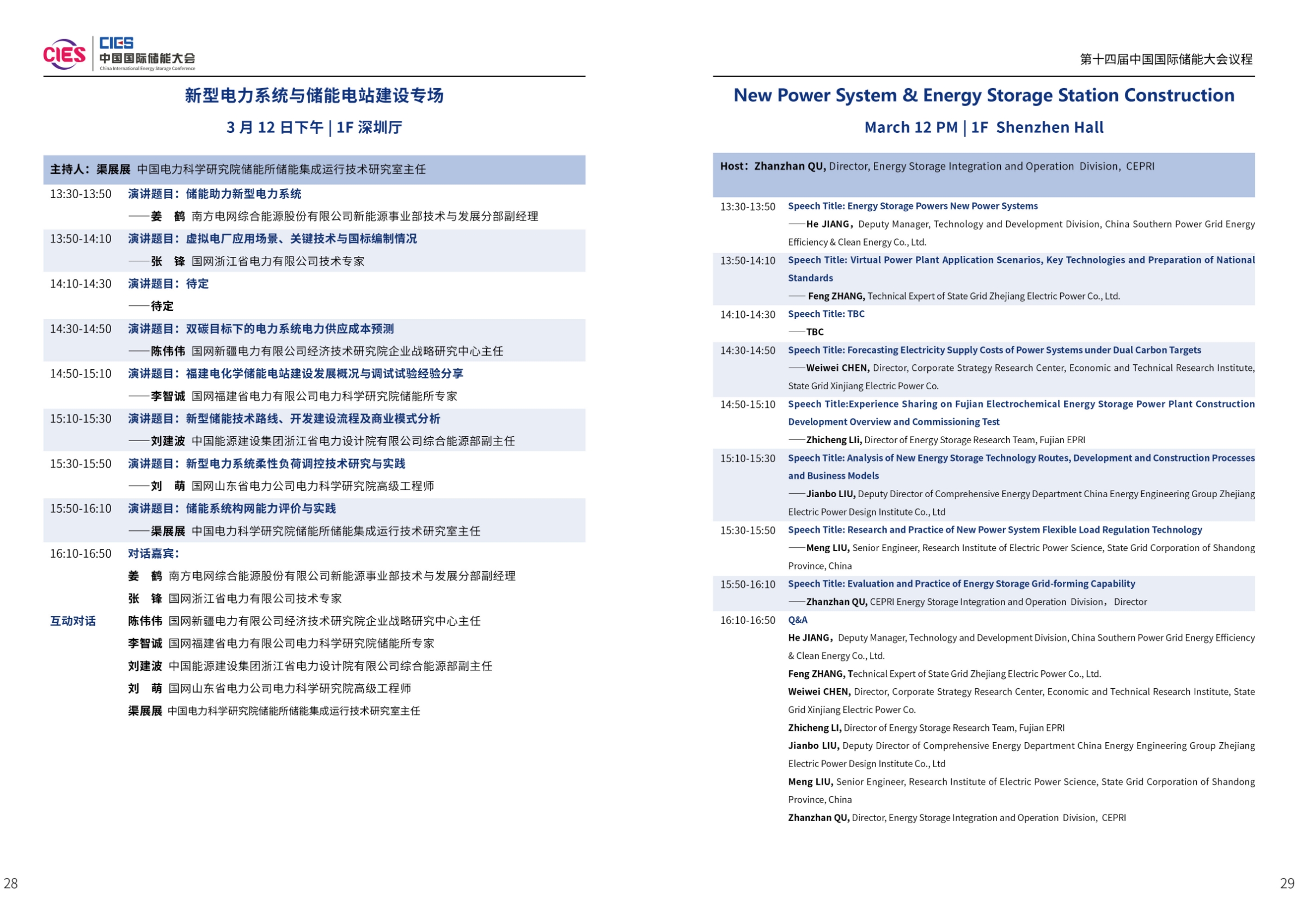 本次大會將安排有大會開幕式暨院士/專家主題報告、“雙碳”與新型電力系統(tǒng)(上、下)、新型儲能系統(tǒng)集成解決方案(上、中、下)、儲能電站規(guī)劃與設計、國際儲能、儲能檢測認證及標準、儲能溫控系統(tǒng)與安全、長時儲能技術、工商業(yè)儲能、新型儲能資本專場、儲能電站建設與運維、多功能儲能(構(gòu)網(wǎng)型與混合)、新型電力系統(tǒng)與儲能電站建設、儲能新品發(fā)布等17個專場論壇。