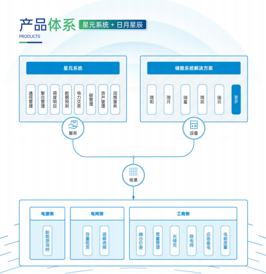 目前,國瑞協(xié)創(chuàng)已形成“星元系統(tǒng)+日月星辰=三大領(lǐng)域“的業(yè)務(wù)體系。以儲能系統(tǒng)集成解決方案為基座,國瑞協(xié)創(chuàng)布局智慧綠能運維解決方案及全生命周期服務(wù)管理,軟件、硬件及服務(wù)多維發(fā)力,產(chǎn)品覆蓋了發(fā)電側(cè)、電網(wǎng)側(cè)及工商側(cè)儲能三大領(lǐng)域,涉及虛擬電廠、碳資產(chǎn)管理、微電網(wǎng)、峰谷價差、應(yīng)急備電、移動儲能、新能源消納、調(diào)峰調(diào)頻、獨立儲能等豐富的應(yīng)用場景,助力用戶從能源消費者走向能源消費者+生產(chǎn)者+使能者。