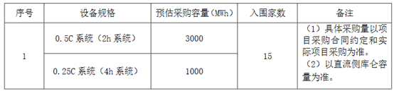 2023年7月31日,大唐集團曾發(fā)布2023年度磷酸鐵鋰電池儲能系統(tǒng)框架采購,規(guī)模為3GWh,包含0.5C系統(tǒng)2.4GWh、0.25C系統(tǒng) 0.6GWh。