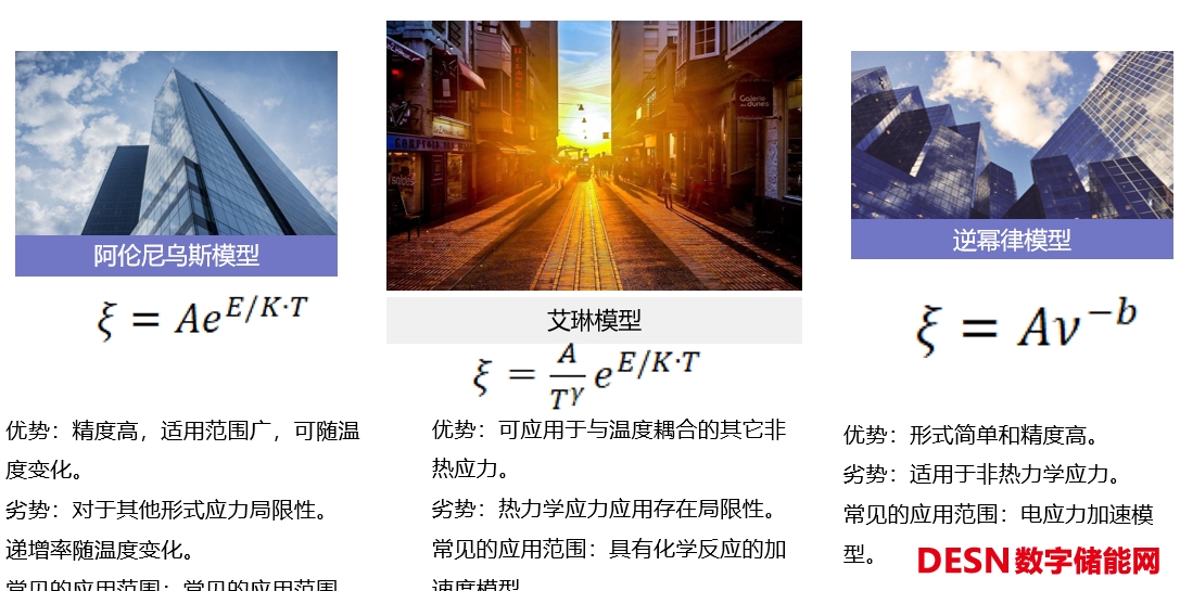 阿倫尼烏斯模型、艾琳模型和逆冪律模型,這三個模型我個人認為,你們那個好用就用那個,可能有一些電化學從業(yè)者對模型有一定的愛憎不同,實際上我們做的時候沒必要,這底下的優(yōu)缺點都寫出來了,你們覺得那個模型好用就可以用那個,甚至可以聯(lián)合使用。