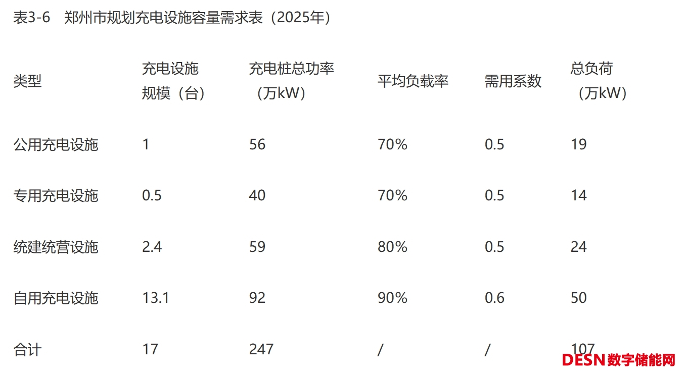 專用充電站直流充電設(shè)施按80kW/槍,公共充電站直流充電設(shè)施按80kW/槍,統(tǒng)建統(tǒng)營(yíng)充電站直流充電設(shè)施按60kW/槍,自用交流樁按7kW/樁,其他交流樁按7kW/樁計(jì)算,規(guī)劃至2025年,鄭州市充電基礎(chǔ)設(shè)施總用電需求為107萬(wàn)kW。