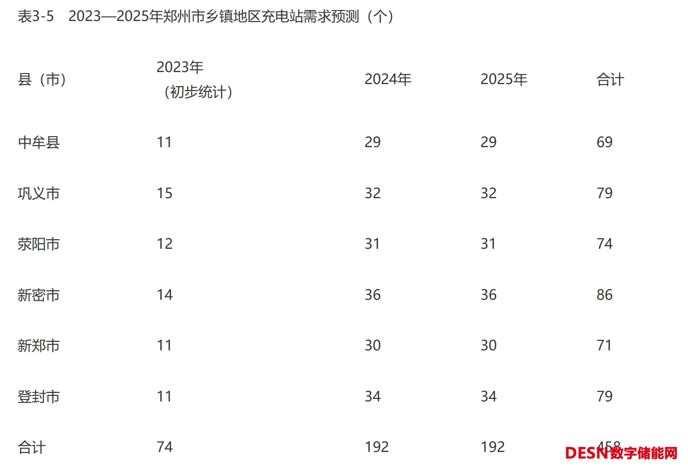 未來(lái),鄉(xiāng)鎮(zhèn)地區(qū)將是新能源汽車增長(zhǎng)的熱點(diǎn)區(qū)域,應(yīng)加速配建公用充電設(shè)施,交通便利的場(chǎng)所以快充為主慢充為輔,靠近居住小區(qū)、自然村的場(chǎng)所以慢充為主快充為輔。鄭州市周邊區(qū)縣(市)現(xiàn)有22個(gè)街道、64個(gè)鎮(zhèn)、10個(gè)鄉(xiāng)、273個(gè)社區(qū)、1654個(gè)自然村,為了激發(fā)農(nóng)村地區(qū)新能源汽車消費(fèi)潛力,2023年在每個(gè)鄉(xiāng)鎮(zhèn)至少建設(shè)1座公用充電站,2024—2025年加大建設(shè)力度,每年按照社區(qū)和自然村總量的10%配建公共充電站,單站配建充電設(shè)施不少于10個(gè)。2023—2025年,在鄉(xiāng)鎮(zhèn)地區(qū)將新增458個(gè)充電站、4580個(gè)充電設(shè)施。