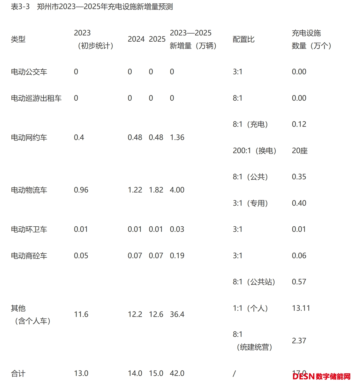 根據(jù)工業(yè)和信息化部等部門《關(guān)于組織開展公共領(lǐng)域車輛全面電動(dòng)化先行區(qū)試點(diǎn)工作的通知》(工信部聯(lián)通裝函〔2023〕23號(hào)),試點(diǎn)領(lǐng)域新增及更新車輛中新能源汽車比例顯著提高,其中城市公交、出租、環(huán)衛(wèi)、郵政快遞、城市物流配送領(lǐng)域力爭(zhēng)達(dá)到80%。本規(guī)劃原則上采用以上標(biāo)準(zhǔn),結(jié)合鄭州市實(shí)際調(diào)研情況進(jìn)行合理調(diào)整,2023—2025年各類型新能源汽車增量如下表所示。