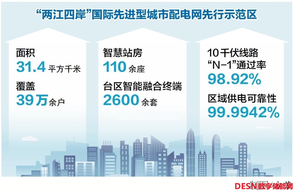 通過(guò)深化多項(xiàng)新技術(shù)應(yīng)用,截至3月底,“兩江四岸”國(guó)際先進(jìn)型城市配電網(wǎng)先行示范區(qū)內(nèi)10千伏線路的“N-1”通過(guò)率提升至98.92%,區(qū)域供電可靠率提升至99.9942%。