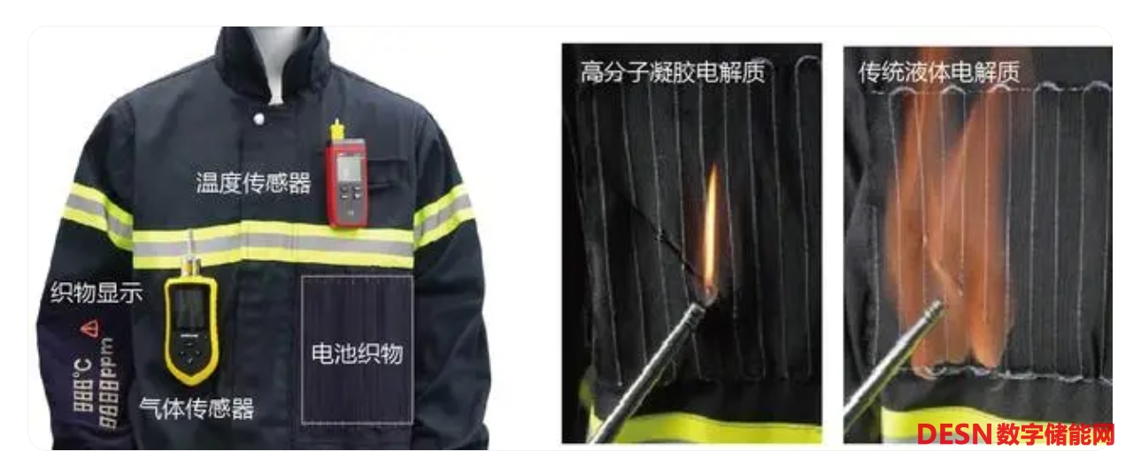 團(tuán)隊(duì)還進(jìn)一步制作了多功能消防服,在高溫火場(chǎng)的模擬環(huán)境中,電池織物在即使被磨損剪斷后仍沒有發(fā)生著火、爆炸等安全事故,并穩(wěn)定地為對(duì)講機(jī)、傳感器等消防員隨身設(shè)備供電。
