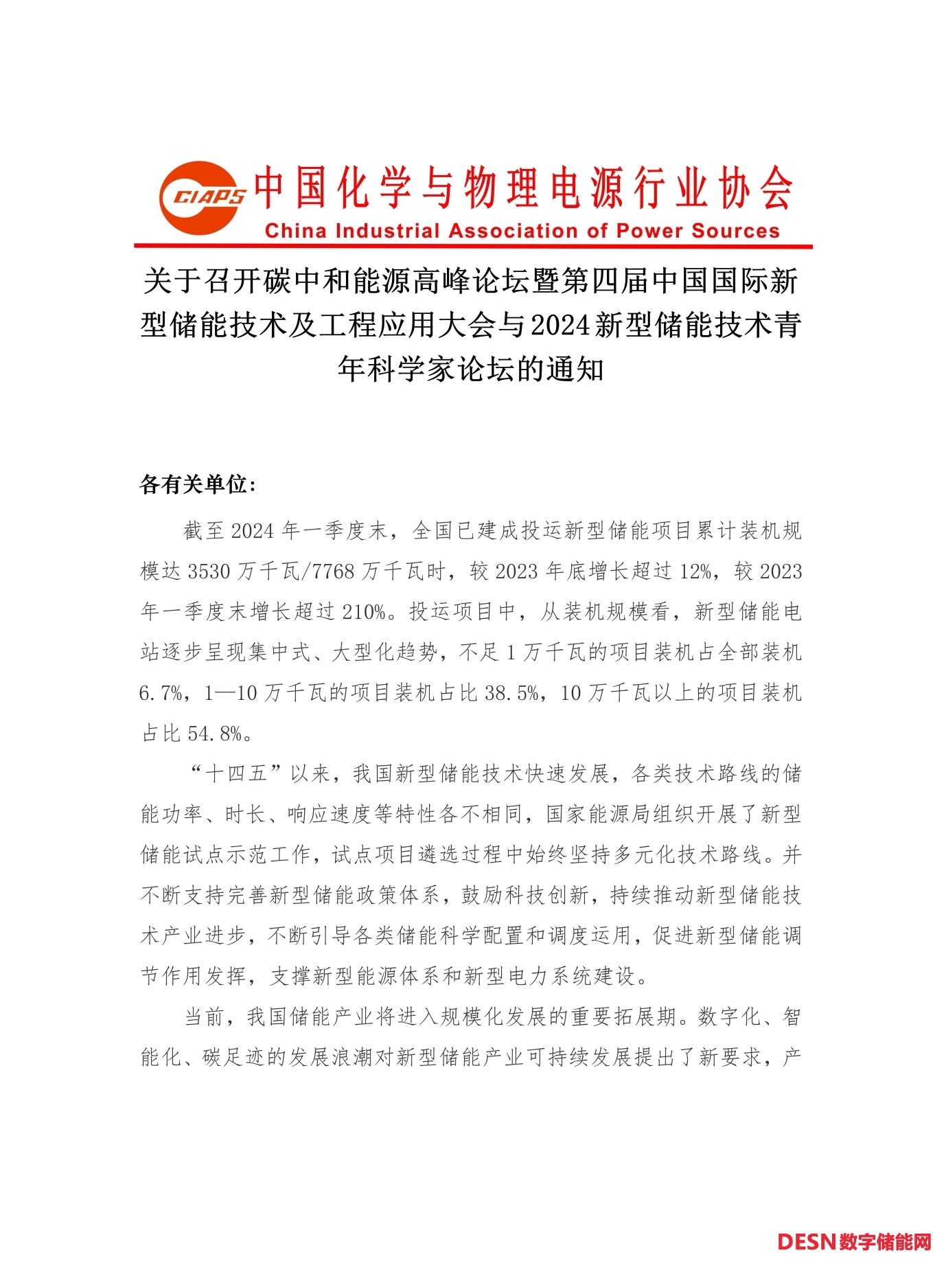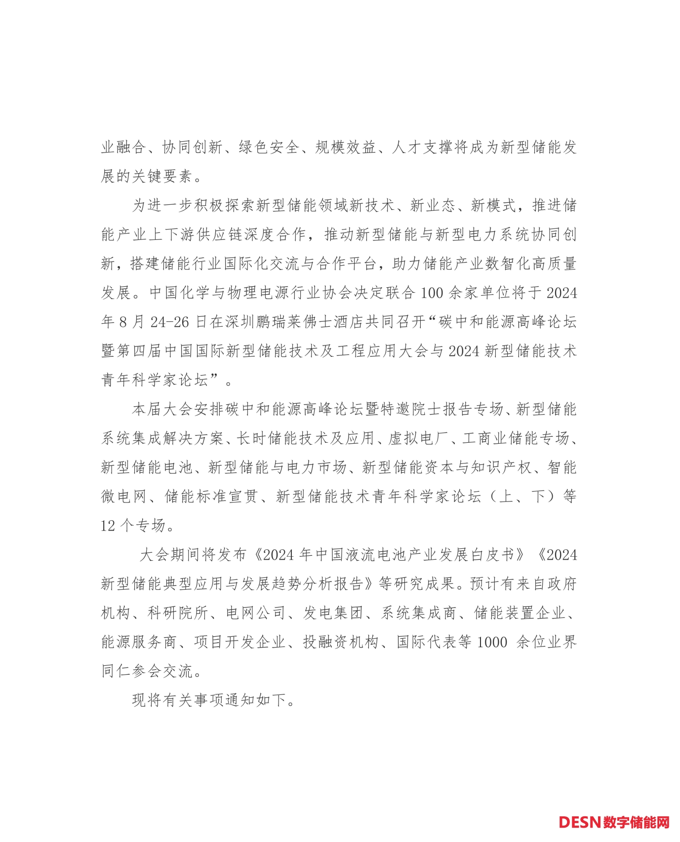 為進(jìn)一步積極探索新型儲(chǔ)能領(lǐng)域新技術(shù)、新業(yè)態(tài)、新模式,推進(jìn)儲(chǔ)能產(chǎn)業(yè)上下游供應(yīng)鏈深度合作,推動(dòng)新型儲(chǔ)能與新型電力系統(tǒng)協(xié)同創(chuàng)新,搭建儲(chǔ)能行業(yè)國(guó)際化交流與合作平臺(tái),助力儲(chǔ)能產(chǎn)業(yè)數(shù)智化高質(zhì)量發(fā)展。中國(guó)化學(xué)與物理電源行業(yè)協(xié)會(huì)決定聯(lián)合100余家單位將于2024年8月24-26日在深圳鵬瑞萊佛士酒店共同召開(kāi)“碳中和能源高峰論壇暨第四屆中國(guó)國(guó)際新型儲(chǔ)能技術(shù)及工程應(yīng)用大會(huì)與2024新型儲(chǔ)能技術(shù)青年科學(xué)家論壇”。