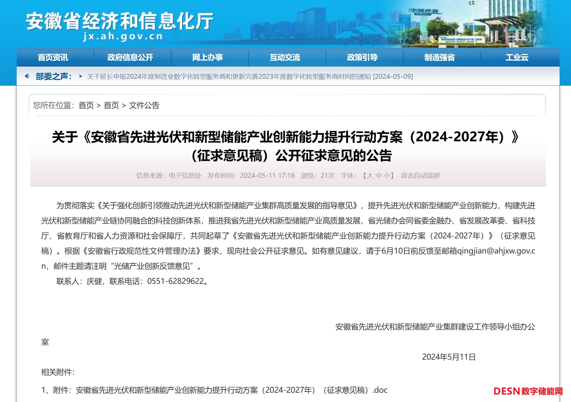 中國儲(chǔ)能網(wǎng)訊:為貫徹落實(shí)《關(guān)于強(qiáng)化創(chuàng)新引領(lǐng)推動(dòng)先進(jìn)光伏和新型儲(chǔ)能產(chǎn)業(yè)集群高質(zhì)量發(fā)展的指導(dǎo)意見》,提升先進(jìn)光伏和新型儲(chǔ)能產(chǎn)業(yè)創(chuàng)新能力,構(gòu)建先進(jìn)光伏和新型儲(chǔ)能產(chǎn)業(yè)鏈協(xié)同融合的科技創(chuàng)新體系,推進(jìn)我省先進(jìn)光伏和新型儲(chǔ)能產(chǎn)業(yè)高質(zhì)量發(fā)展,省光儲(chǔ)辦會(huì)同省委金融辦、省發(fā)展改革委、省科技廳、省教育廳和省人力資源和社會(huì)保障廳,共同起草了《安徽省先進(jìn)光伏和新型儲(chǔ)能產(chǎn)業(yè)創(chuàng)新能力提升行動(dòng)方案(2024-2027年)》(征求意見稿)。根據(jù)《安徽省行政規(guī)范性文件管理辦法》要求,現(xiàn)向社會(huì)公開征求意見。如有意見建議,請于6月10日前反饋至郵箱qingjian@ahjxw.gov.cn,郵件主題請注明“光儲(chǔ)產(chǎn)業(yè)創(chuàng)新反饋意見”。