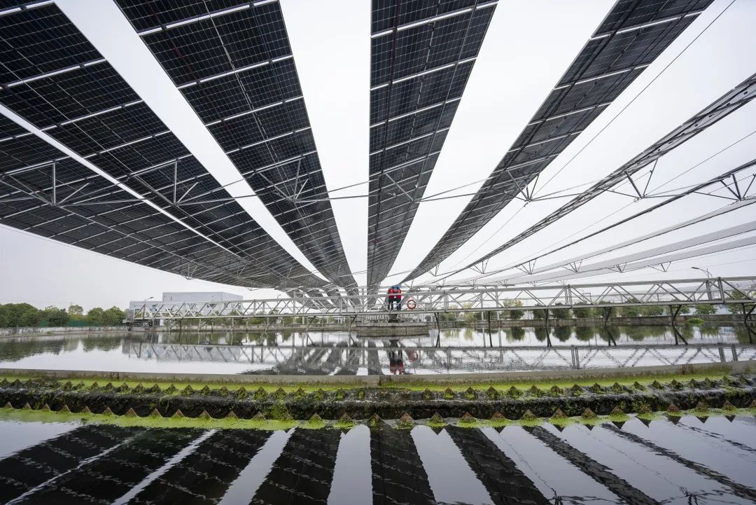 供電員工對柔性支架光伏發(fā)電設(shè)備進(jìn)行巡查