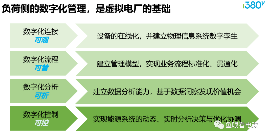 目前制約虛擬電廠發(fā)展的,除了電力市場機制不夠成熟,更重要的是負荷側(cè)的數(shù)字化水平較低,其背后是企業(yè)電力能源的運營服務(wù)水平普遍較低,在可管理層面上并未促進數(shù)字化落地。