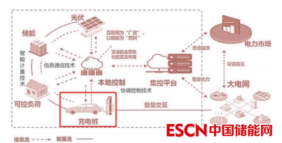 實際上,V2G技術相當于將動力電池作為一個分布式儲能系統(tǒng),將大量電動汽車電池作為儲能源。在電網負荷低時,吸納電能,在電網負荷高時釋放電能。通過數(shù)字化技術將動力電池整合起來,形成一個虛擬電廠,有效提高電力系統(tǒng)的運行效率和調節(jié)能力,減少電網端充電負荷,保證電力系統(tǒng)的運行的穩(wěn)定性。