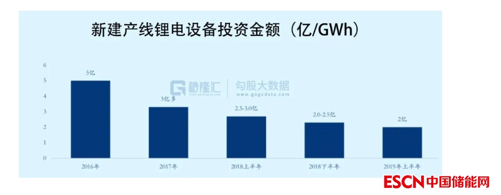 其次,近幾年鋰電池產線設備價格的下降,也令到整個行業(yè)準入門檻有了一些降低,規(guī)模效應疊加設備零部件國產化導致鋰電設備成本大幅下降,目前國內鋰電池產線單GWh產能投資價格已從原來的10億元左右降至2.4億元以下,降幅非常明顯。