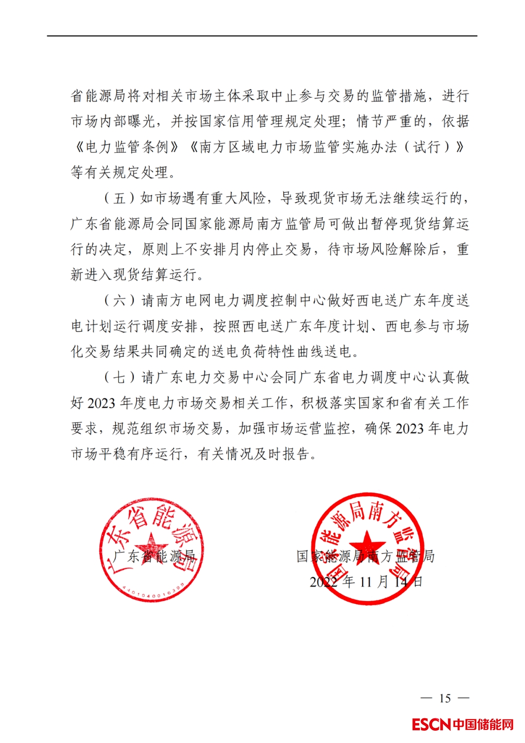 中國(guó)儲(chǔ)能網(wǎng)訊:近日,廣東省能源局、國(guó)家能源局南方監(jiān)管局下發(fā)關(guān)于2023年電力市場(chǎng)交易有關(guān)事項(xiàng)的通知(粵能電力〔2022〕90 號(hào)),通知表示,落實(shí)國(guó)家關(guān)于有序推動(dòng)全部工商業(yè)用戶進(jìn)入電力市場(chǎng)的要求,2023年廣東電力市場(chǎng)規(guī)模約為5500億千瓦時(shí)。同時(shí)指出,適時(shí)推動(dòng)儲(chǔ)能等新興市場(chǎng)主體試點(diǎn)參與電能量市場(chǎng)交易。
