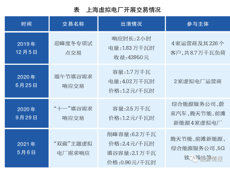 上海虛擬電廠開展交易情況上海虛擬電廠開展交易情況如表所示。