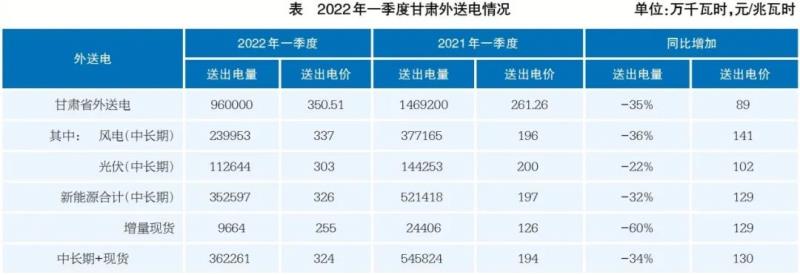 問題五:打擊或阻礙新能源的外送消納。2022年一季度,甘肅省外送電價大幅增加,但外送電量大幅減少。2022年一季度,跨區(qū)跨省外送電量96.00億千瓦時,同比下降35%。送電均價350.51元/兆瓦時,提高89元/兆瓦時。其中新能源外送電量36.22億千瓦時、同比下降34%,新能源送電均價324元/兆瓦時、同比升高130元/兆瓦時、增長高達67%。鑒于2022年跨區(qū)跨省外送電價高,同比提升幅度也大,省內新能源外送積極性很高。但強制不低于90%的年度中長期帶電力合約量政策,使得新能源企業(yè)不得不考慮中長期高倉位帶來的高風險,后期除非外送電價特別高,否則高倉位或者接近滿倉位下,新能源企業(yè)都不敢也沒有意愿簽訂外送電合同了,這必然會影響外送消納,進而增加新能源棄電率(見表)。