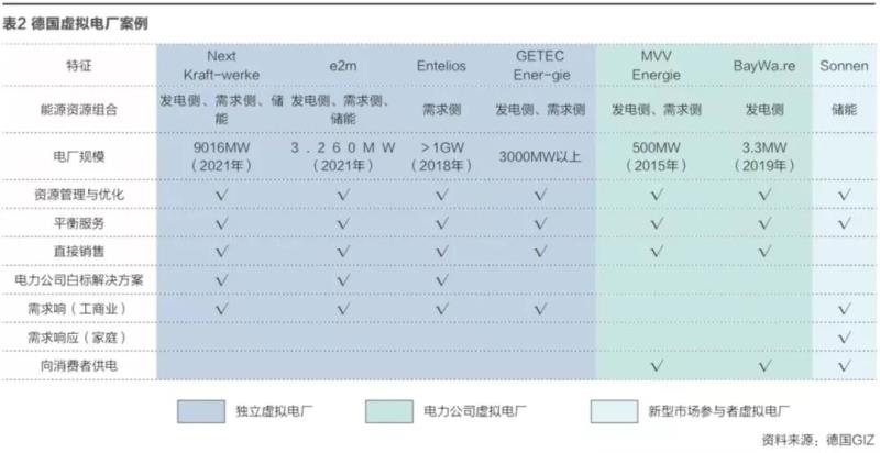德國的虛擬電廠已經(jīng)完全實現(xiàn)商業(yè)化。德國虛擬電廠運營商的一項主要業(yè)務(wù)是在批發(fā)市場銷售100kW以上中型可再生能源電廠生產(chǎn)的電量,在日前市場優(yōu)化其售電,使這些電廠成為虛擬電廠資源。此外,虛擬電廠還有利于如生物質(zhì)發(fā)電和水電這些靈活性較高的機組從日間市場和平衡市場中獲利。除可再生能源電廠外,燃氣熱電聯(lián)產(chǎn)、電池儲能、應(yīng)急發(fā)電機和需求響應(yīng)等都可作為虛擬電廠資源。