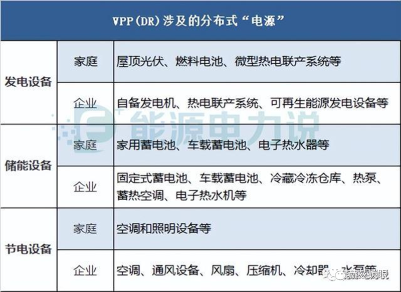 日本:將狹義上的VPP定義為直接并網(wǎng)的可再生能源發(fā)電設備和儲能裝置,而廣義上的VPP還包括用戶側的新型DR,但傳統(tǒng)DR則不包含在其中。VPP(DR)涉及的分布式“電源”主要包括如下三類。