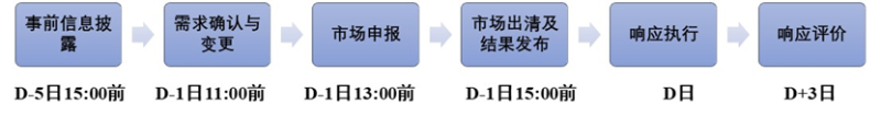需求發(fā)布:日前邀約需求響應(yīng)交易,啟動(dòng)條件是:日前預(yù)計(jì)運(yùn)行日全省或局部存在電力供應(yīng)緊張情況,且電力缺口在當(dāng)期全省最高統(tǒng)調(diào)負(fù)荷的6%以?xún)?nèi);或預(yù)計(jì)局部區(qū)域存在斷面、變壓器、線路等元件過(guò)載風(fēng)險(xiǎn)以及其他系統(tǒng)安全需要時(shí),由調(diào)度中心經(jīng)交易系統(tǒng)向市場(chǎng)主體披露運(yùn)行日(D日)日前邀約需求信息。