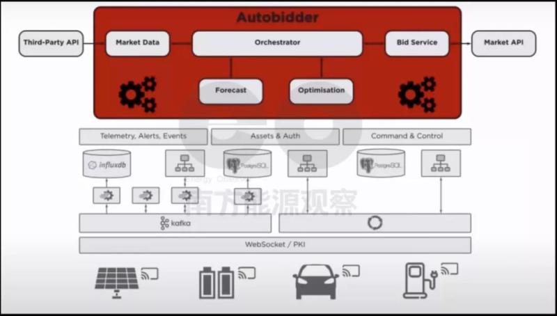 過去幾年,特斯拉開始推出分布式能源計(jì)劃,并提供屋頂光儲(chǔ)一體的虛擬電廠服務(wù)。2020年,特斯拉發(fā)布了全新產(chǎn)品AutoBidder。Autobidder是一套能源資產(chǎn)實(shí)時(shí)交易和控制平臺(tái),能夠向用戶提供虛擬電廠服務(wù),聚合負(fù)荷資源參與能量交互響應(yīng),該產(chǎn)品具備價(jià)格預(yù)測(cè)、負(fù)荷預(yù)測(cè)、發(fā)電量預(yù)測(cè)、智能競(jìng)價(jià)及優(yōu)化調(diào)度等功能。