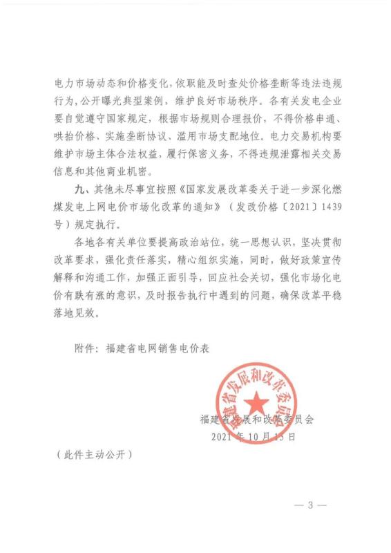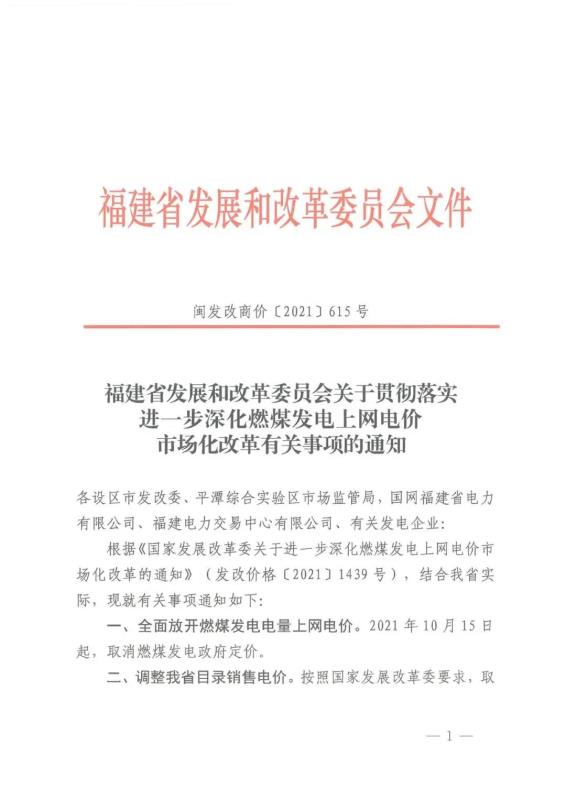 福建:貫徹落實(shí)進(jìn)一步深化燃煤發(fā)電上網(wǎng)電價(jià)市場(chǎng)化改革有關(guān)事項(xiàng)的通知